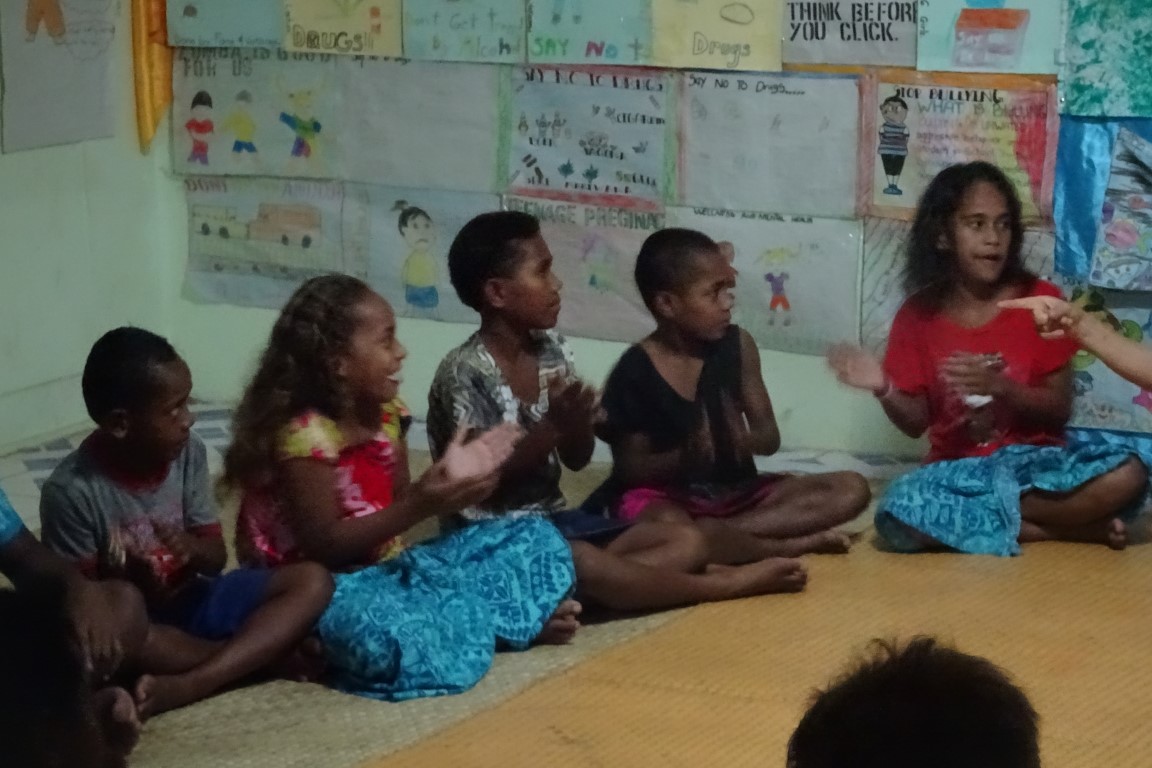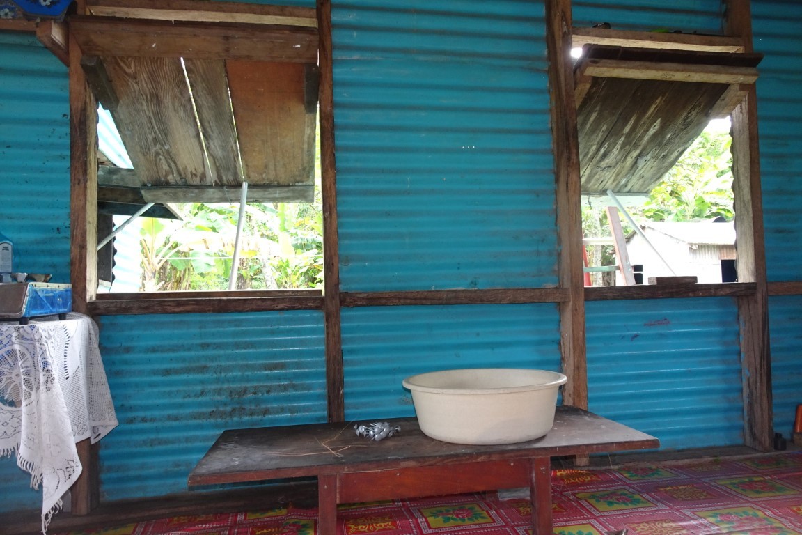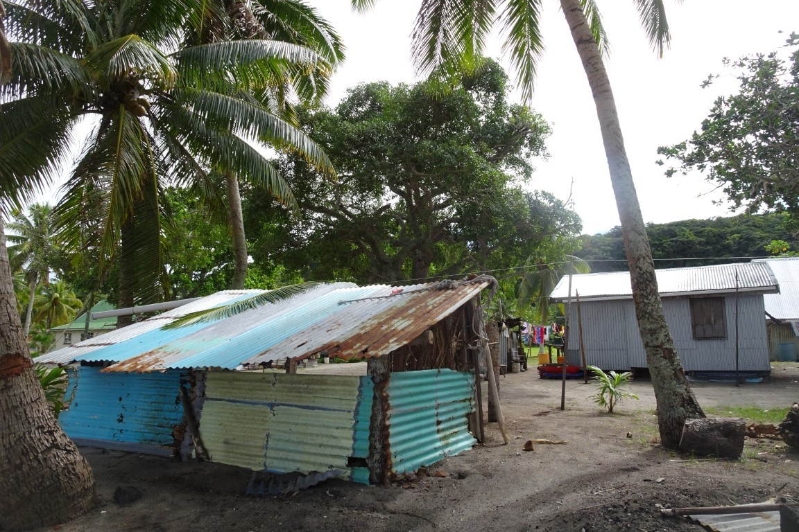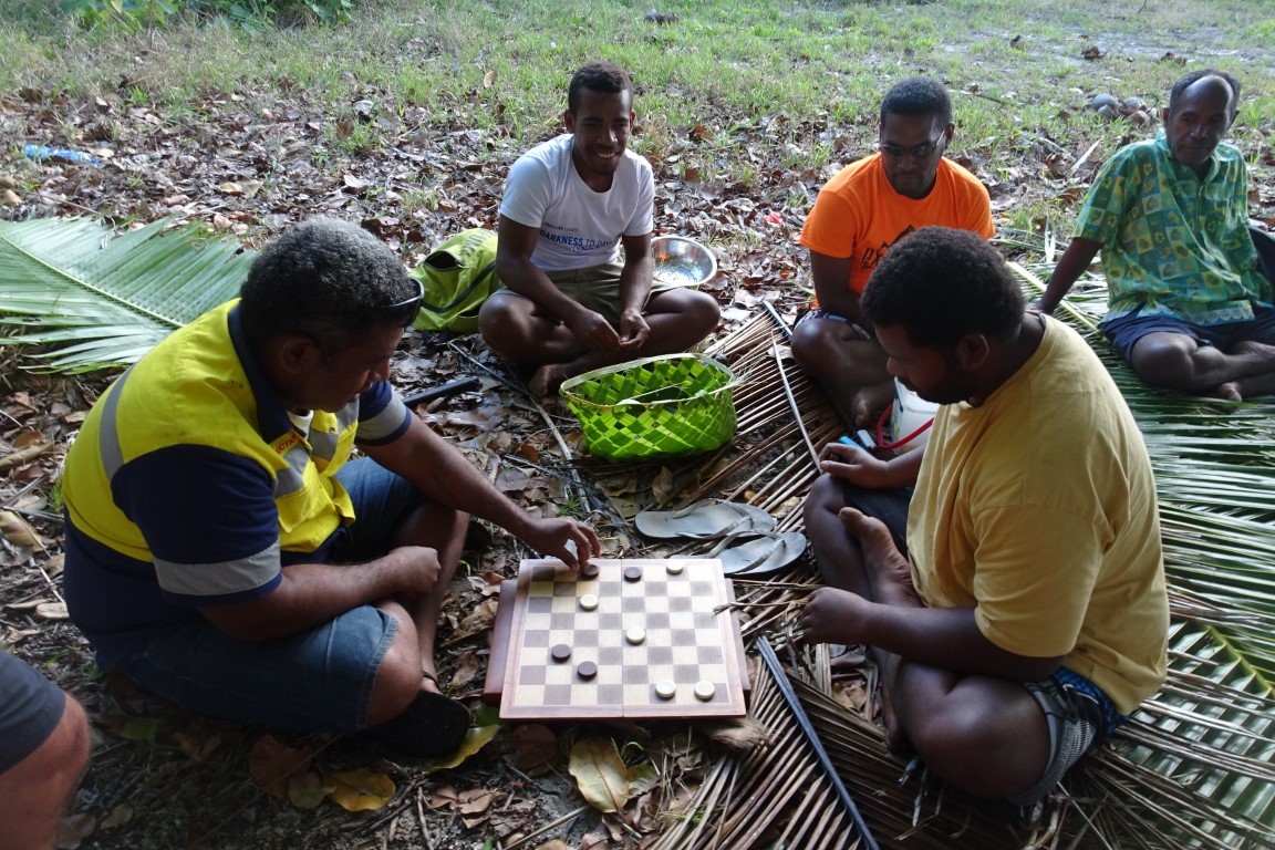 Am frühen Morgen, bevor wir weiter segeln wollten, kommt ein kleines Fischerboot daher. Die Insassen sehen wie schmuddelige Piraten aus. Allerlei Fischerutensilien liegen unsortiert im Kahn. Sie schenken uns sechs Kokosnüsse und Bananen und leihen ein Messer von uns aus, um ihre Köder zu zerlegen. Sie laden uns in ihr Dorf ein. Doch wir wollen weiter. Ich schneide vom frischen Kuchen für jeden zwei Stücke ab und überreiche sie ihnen mit einem kleinen Tütchen gemahlenem Kava.
