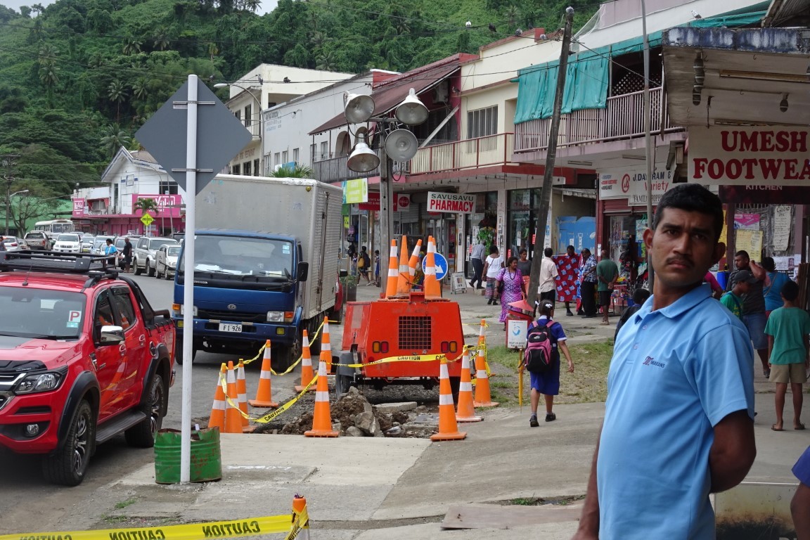 Seit dem letzten Aufenthalt vor zwei Jahren, hat sich in Savusavu vieles geändert. Werden schon mal angepisst, weil wir im Fluss ankern. Die neue Marina ist immer noch nicht fertig. Da war angeblich mal ein Baustop wegen illegaler Abholzung eingelegt. Gut so. Doch nun scheint alles wieder weiter zu gehen. Es ist traurig zuzusehen, wenn die vielen Vögel der Mangroven laut zwitschernd flüchten, wenn die schweren Baumaschinen Bäume umrammen. Über der Baustelle hängt vom nassen Holz, das dort verbrannt wird, ein dicker Qualm.