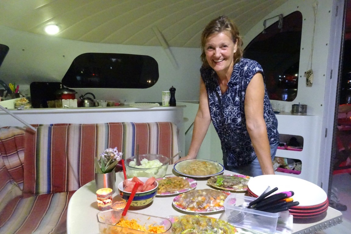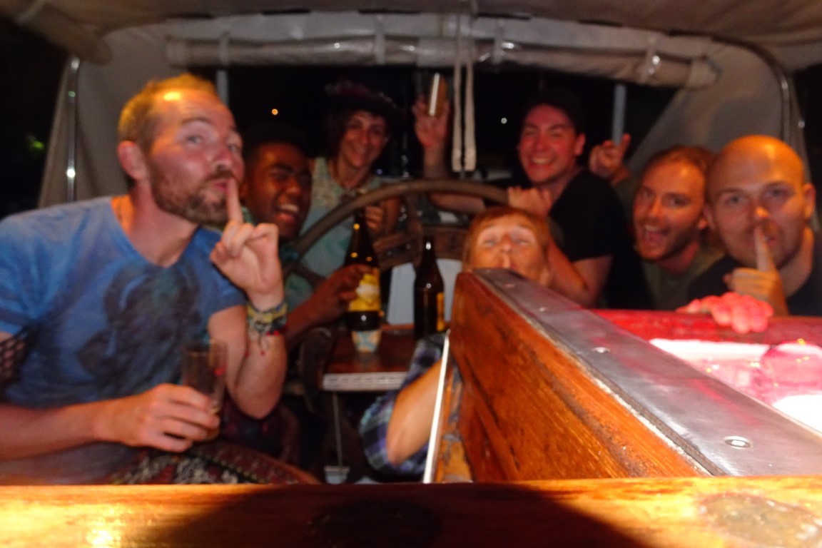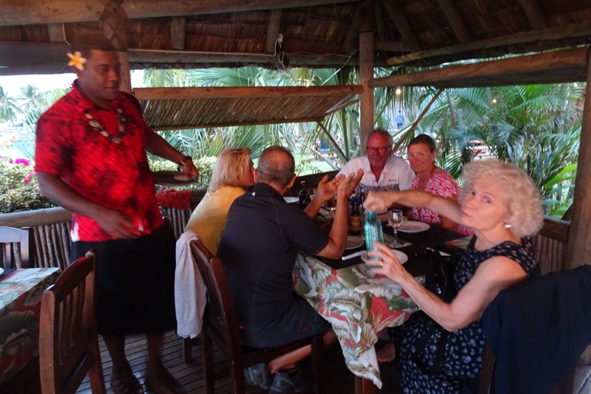 Susanne und Hanspeter liegen mit ihrer Yacht Mi Corazon an einer Boje. Ich freue mich riesig die beiden wieder zu sehen. Thomas und ich machen mehrere tolle Ausflüge in die Berge. Fahrpläne sind ein Rätsel mit mindestens sieben Siegel. Fragst du sieben Busfahrer, bekommst du genau so viele verschiedene Antworten. Prompt taucht auf dem Rückweg kein Bus auf. So laufen wir auf der Strasse, irgendwo in den Bergen in strömendem Regen Richtung Savusavu. Ein junger Typ hat Erbarmen. Nimmt uns mit, ohne dass wir Autostop gemacht haben. Er fährt uns mit seiner gepimpten Karre zurück. Schneller und fast so gekonnt wie Schumacher. So kommen wir doch noch pünktlich zu Susannas Geburtstagsfest. Sally und Metthew von der Segelyacht Alchemist sind auch eingeladen. Die beiden haben wir heute Nachmittag zufällig im Bus kennen gelernt. War ein nettes Fest mit feinem Essen und viel Kopfweh danach…
