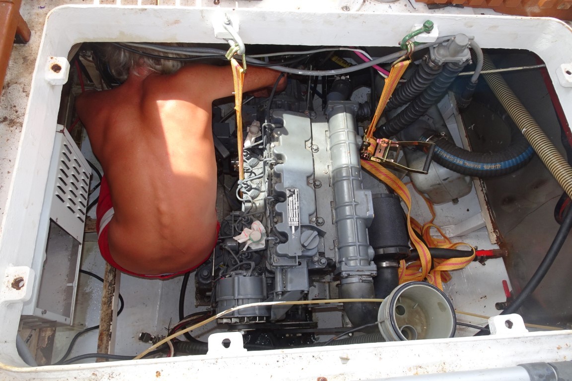 Kurz vor dem Ablegen entflammt noch eine Diskussion wegen der Routenplanung. Erst ganz in den Süden-Osten nach Fulaga segeln? Oder doch erst die Inseln im Osten ansteuern? Von Fulaga wären alle anderen Inseln leichter zu erreichen. Studieren wiederholt verschiedene Wetterberichte. Wir denken, für die gemütliche Robusta ist das Wetterfenster zu kurz um Fulaga zu erreichen. Mit Wind voll auf die Nase, erreichten wir Fulaga auch unter Motor nicht falls der Wind zu früh dreht. Den anderen wäre es egal die Flaute zu nutzen und die ganze Strecke unter Motor zu fahren. Mit Kurs auf Fulaga dümpeln wir los. Doch bereits auf Höhe von Koro Island stellt der Wind ab. Flaute. So drehen wir um und ankern im Norden von Koro und warten dort auf den Winddreher. Unsere Freunde informieren wir per Funk über die Planänderung. Alchemist tuckert bei Flaute nach Fulaga.