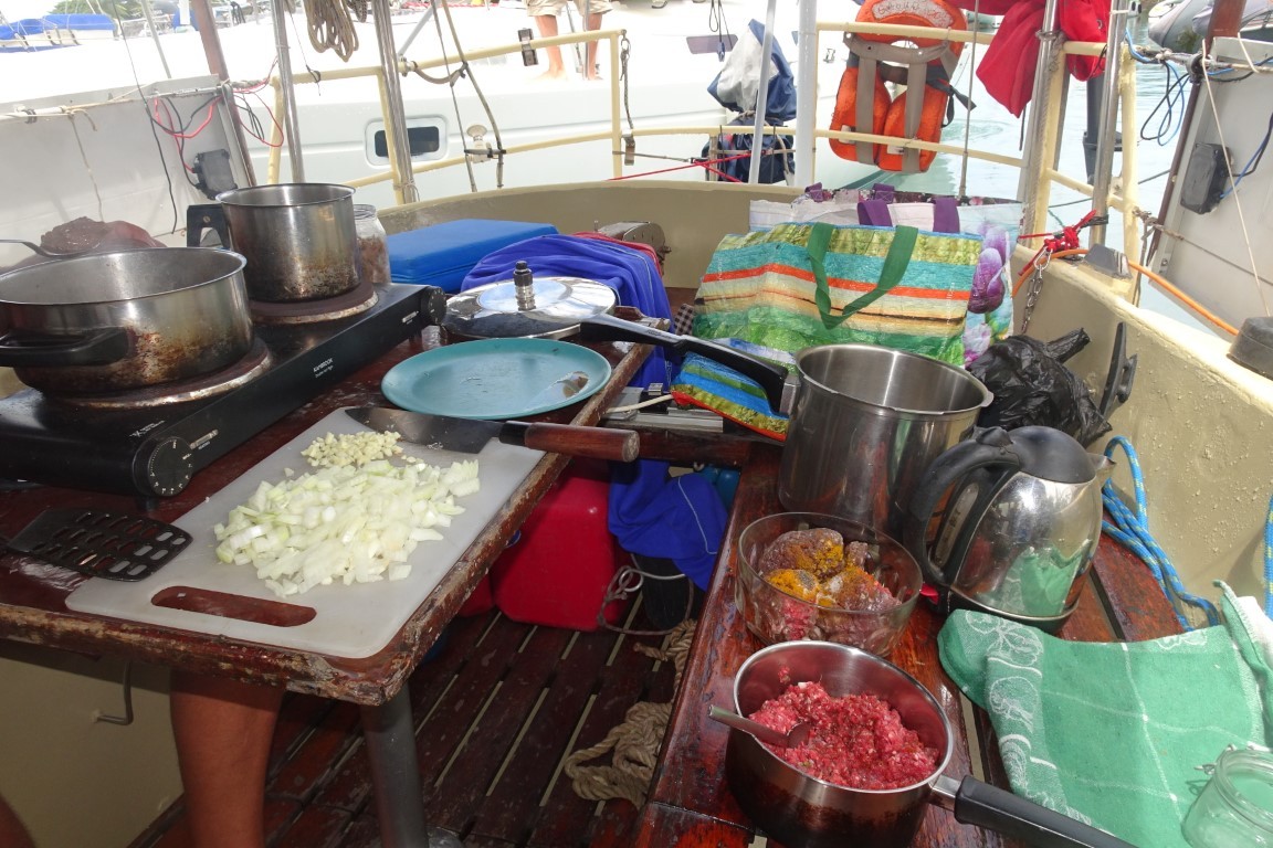 Jep und der Passat dreht tatsächlich auf Süd! Jetzt aber schnell noch dick einkaufen. In den Lau Inseln gibt es keine Läden. Die wenigen Güter die mit Versorgungsschiffen auf die abgelegenen Inseln gebracht werden, sollten meiner Meinung nach nicht von den Seglern aufgekauft werden. Der Markt in Savusavu ist ein Traum! So viel schönes Gemüse und überall riecht es intensiv nach Indischen Gewürzen. Nur bei den Eier habe ich mich vergriffen. Viele waren schon übers Datum. Mist, die Kavabüschel (Yaqona) sind hier massiv teurer als in Suva! Kava sind getrocknete Wurzeln aus der das traditionelle Getränk hergestellt wird, welches Männer gemeinsam aus einer grossen Schüssel trinken. Darf natürlich nicht fehlen. Beim Besuch eines Dorfes wird erwartet, dass dem Dorfchef eine Yaqona überreicht wird. Kava wächst in den Lau Inseln nicht. Darum ist es ein besonders begehrtes Geschenk.