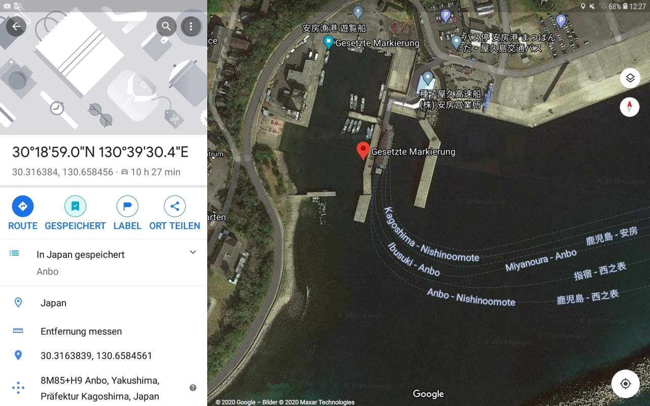 Gegen Abend sind wir auf der Insel Yakushima angekommen und die Robusta ist im im kleinen Hafen von Yudomari festgemacht. Da sind bei Ebbe nur wenige Zentimeter unter dem Kiel. Der Hafen ist total ungeschützt und wird bei Südwind bestimmt zur Hölle. Schade, der Ort wäre super nett gewesen. Sobald es hell wird, hauen wir hier wieder ab. Laut Prognosen wird die Nacht windstill bleiben. Nun weichen wir uns erstmal in der heissen Naturquelle ein. Etwas genialeres gibt es nach einer Passage nicht. Es ist kühl beim Segeln. So um die 15 Grad und nachts fällt das Thermometer schon mal auf fünf Grad.